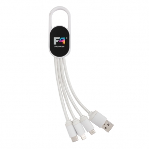 Artikel-Nr: XND302073Dieses 4-in-1 Ladekabel mit Karabiner hat einen USB-Input, einen doppelseitigen Output für iOS und Mircro-USB für Android-Geräte sowie einen Type-C-Output um so alle gängingen Geräte laden zu können. Das Case aus ABS und das 10cm Kabel mit Nylon umwoben. Unterstützt das Laden bis zu 2.1A.