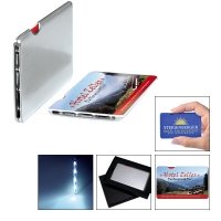Artikel-Nr: 57383550SI-RO4 LED Leuchte im Scheckkarten Format. Praktische Leuchte mit 4 superflachen LED (16 Lumen). Das stabile ABS Gehäuse ist auf einer Seite mit einer Aluminiumplatte ausgestattet, um eine individuelle Gestaltung, wenn gewünscht sogar ganzflächig, zu ermöglichen. Durch das flache Format und das geringe Gewicht eignet sich die LED Leuchte perfekt für Mailingaktionen. 2 Lithium-Knopfzellen CR2016 und hochwertige Karton-Geschenkverpackung inkl.