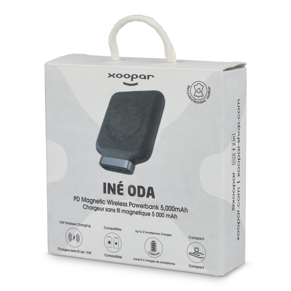 Artikel-Nr: ART41416N0002Die Xoopar Ine Oda ist eine stylische 5000 mAh Powerbank mit MagSafe. Bietet 15 W kabelloses und 18 W kabelgebundenes Laden mit Power Delivery für schnelle und effiziente Nutzung. Kompakt, leistungsstark und umweltbewusst: perfekt für unterwegs.