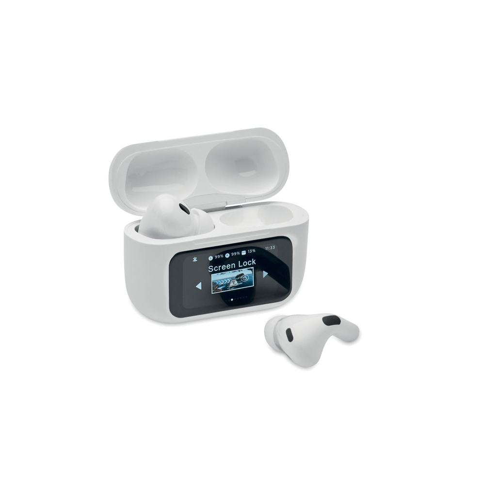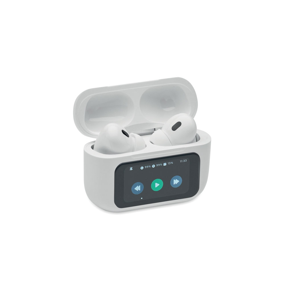 Artikel-Nr: OCBMO2737-065.0 TWS True Wireless Stereo Ohrhörer-Set mit Mikrofon. ABS. Inkl. eingebauter 30 mAh Batterie. Mit ANC (Active Noise Cancellation) und ENC (Environmental Noise Cancellation) sowie Touchscreen Control & Display. Inkl. 230 mAh-Ladebox.