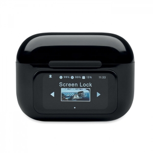 Artikel-Nr: OCBMO2737-035.0 TWS True Wireless Stereo Ohrhörer-Set mit Mikrofon. ABS. Inkl. eingebauter 30 mAh Batterie. Mit ANC (Active Noise Cancellation) und ENC (Environmental Noise Cancellation) sowie Touchscreen Control & Display. Inkl. 230 mAh-Ladebox.