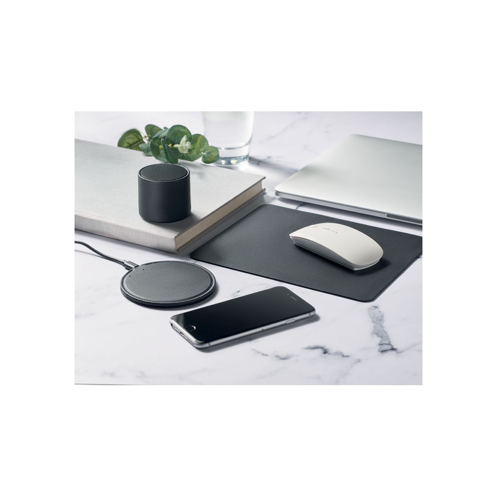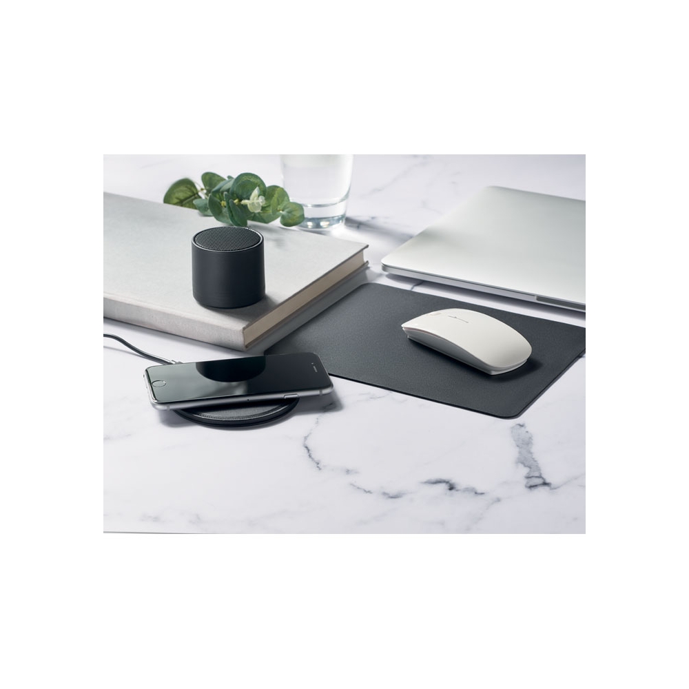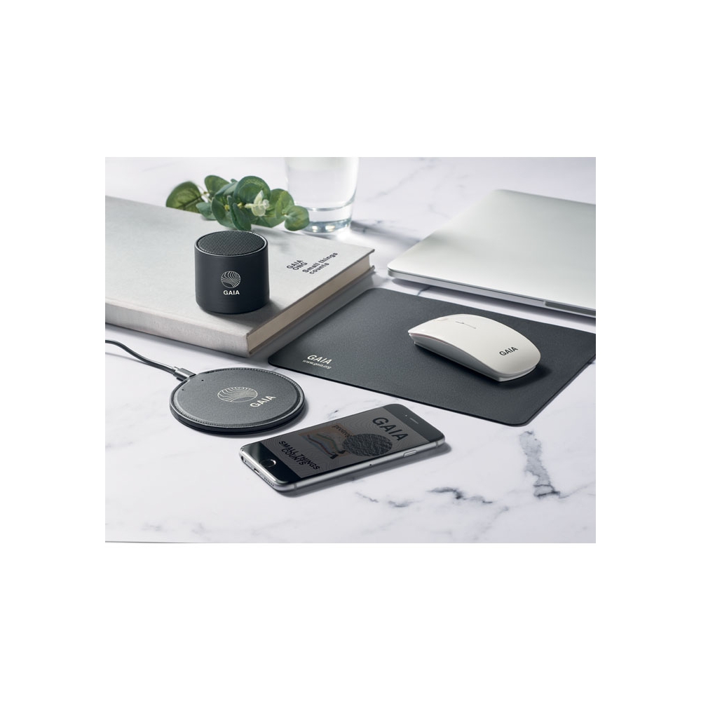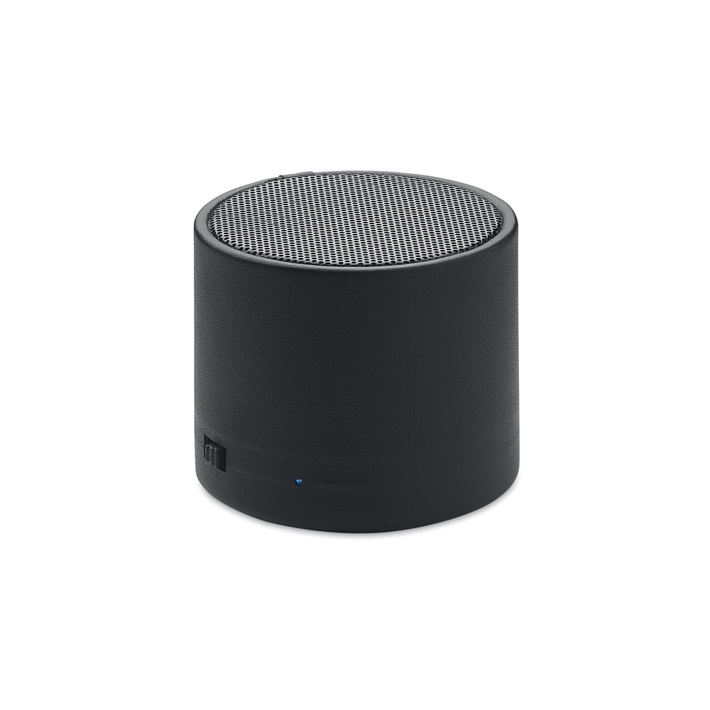 Artikel-Nr: OCBMO2173-035.0 Wireless Lautsprecher. Gehäuse aus ABS und PU (zu 58% recycelt: 40% recyceltes Polyester, 18% recyceltes PU). LED-Lichtanzeige. Ausgangsdaten: 3W, 3 Ohm und 5V. Spielzeit ca. 3h.