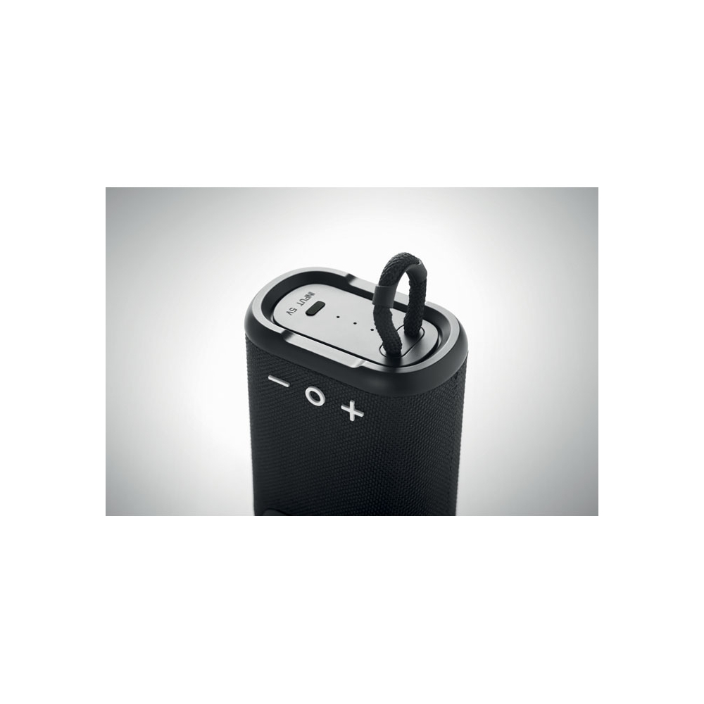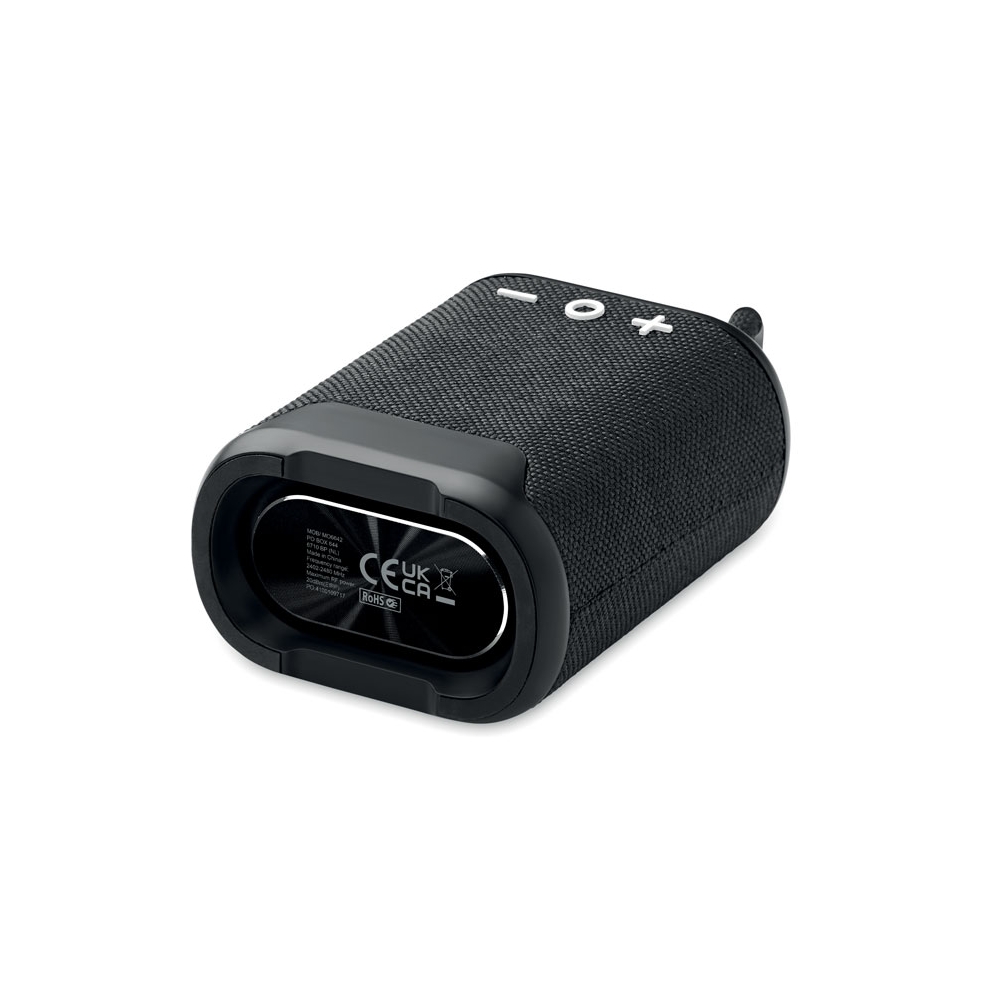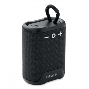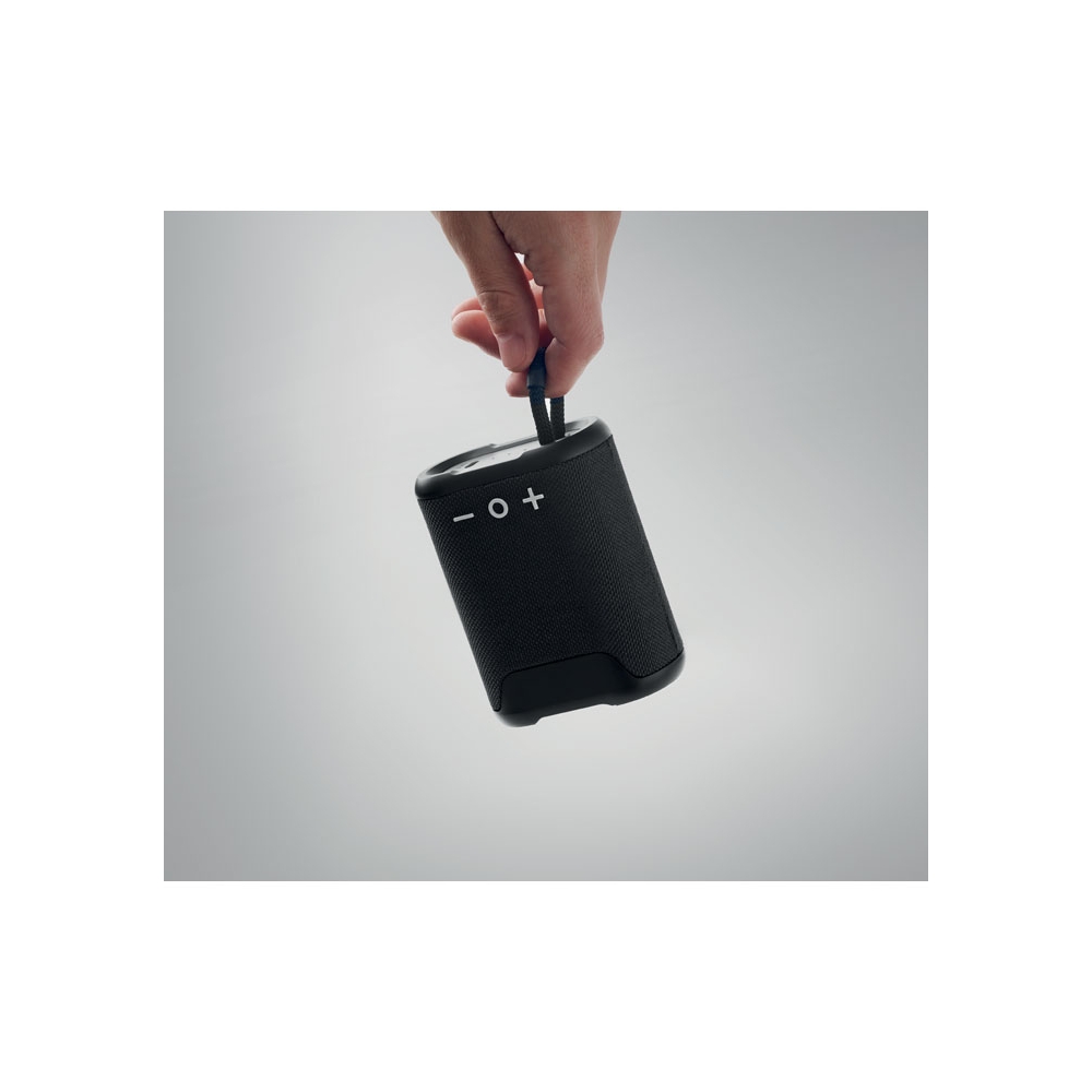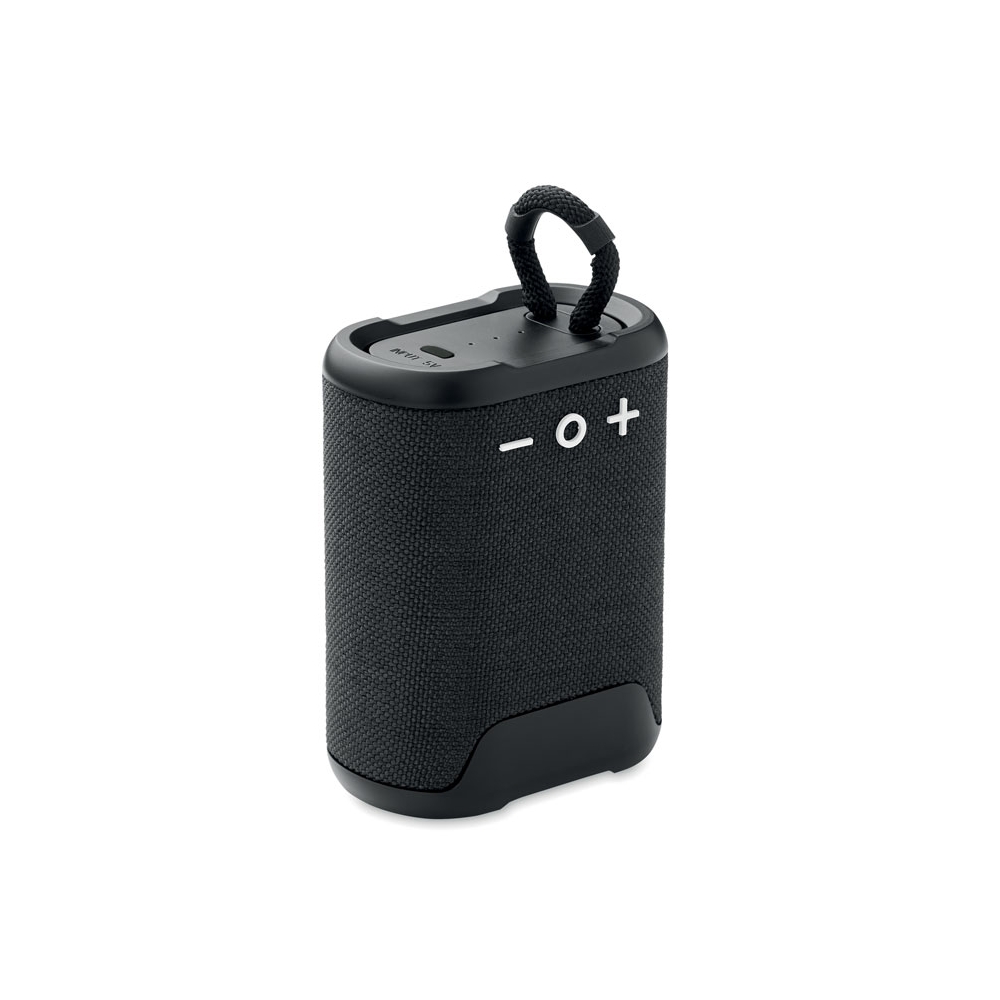 Artikel-Nr: OCBMO6642-035.0 wireless Lautsprecher aus ABS mit 30 % Hanf und 70 % Polyestergewebe. Wasserfest nach IPX7. Inkl. wiederaufladbarem 1800 mAh Li-Ion-Akku. Ausgangsleistung: 5 W, 4 Ohm. Spielzeit: ca. 8h.