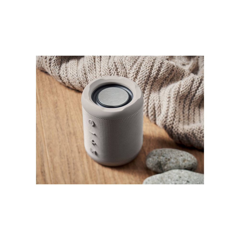 Artikel-Nr: OCBMO2733-075.0 wireless Lautsprecher. ABS mit RPET-Gewebe. SD-Kartenslot und AUX- / USB-Kabel. Inkl. wiederaufladbarer Li-ION-Akku mit 800 mAh. Ausgangsdaten: 5 W, 3 Ohm und 5 V. Spielzeit ca. 3 Stunden.