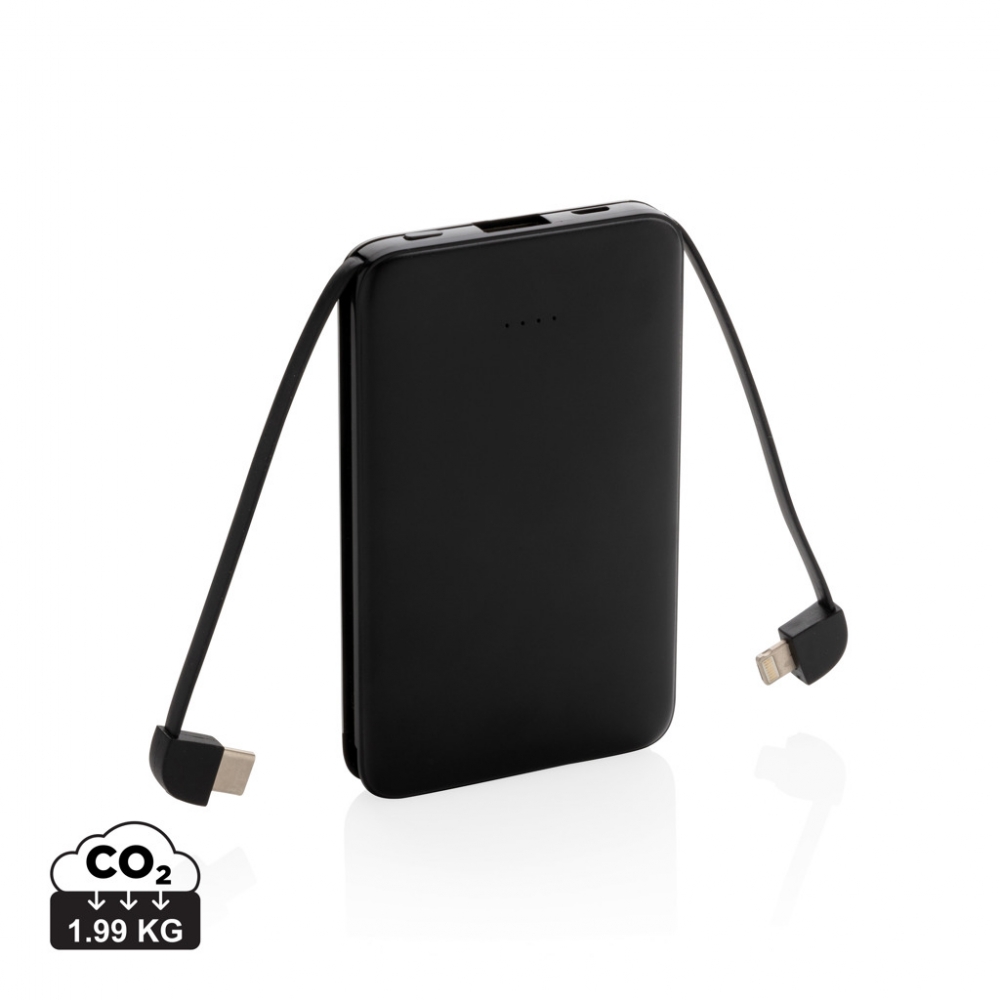 Artikel-Nr: XND322081Kompakte und flache 5.000 mAh ABS-Powerbank, die durch Ihre 3 integrierten TPE-Kabel mit allen mobilen Geräten kompatibel ist. Die A-Grade Lithium Polymer Batterie kann voll geladen Ihr Smartphone bis zu 2 mal aufladen. Mit Ladestandsanzeige. Input: 5V/2A. Output: 5V/2A