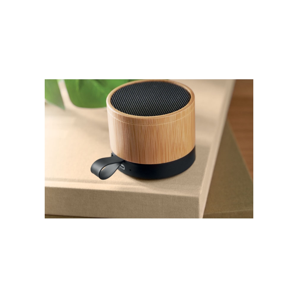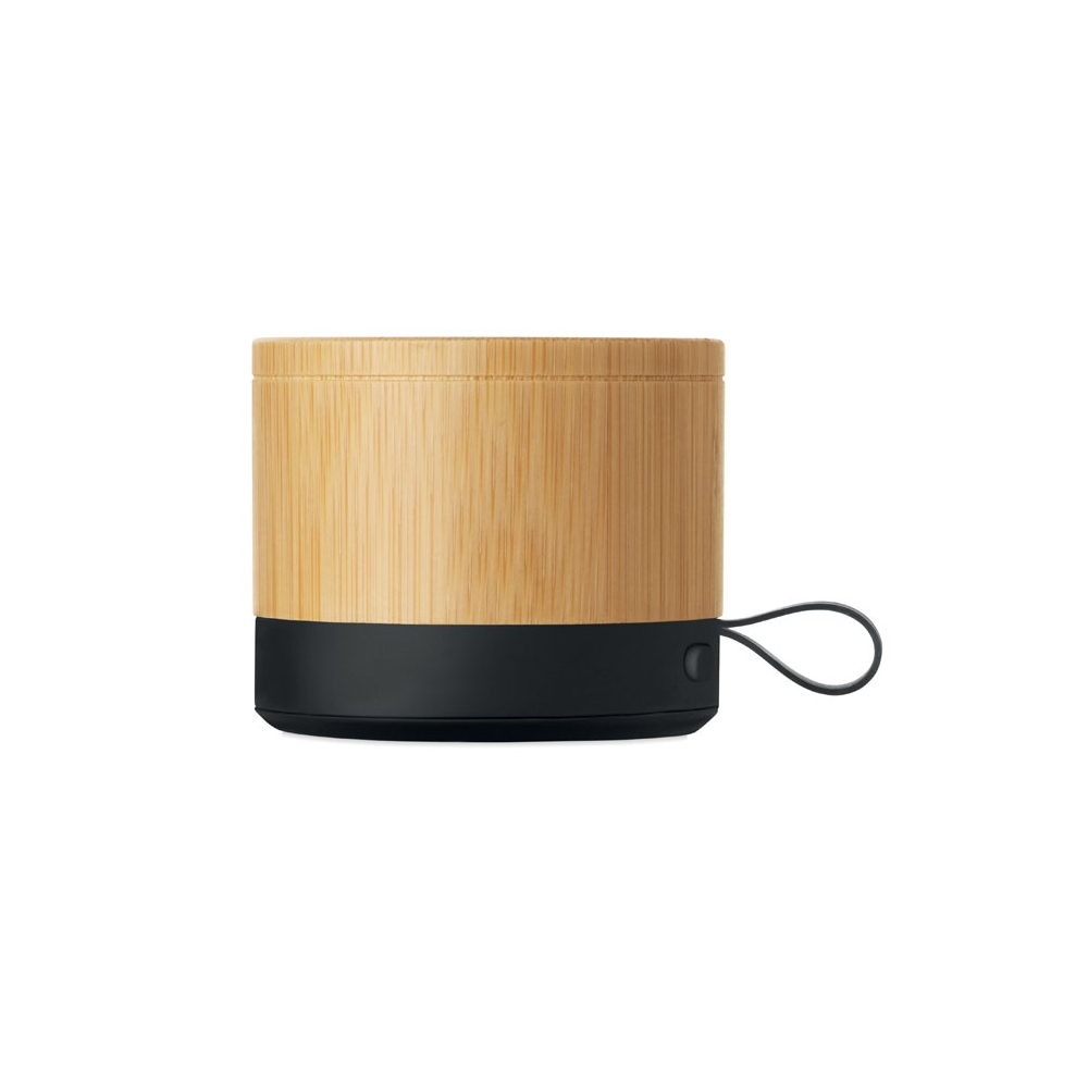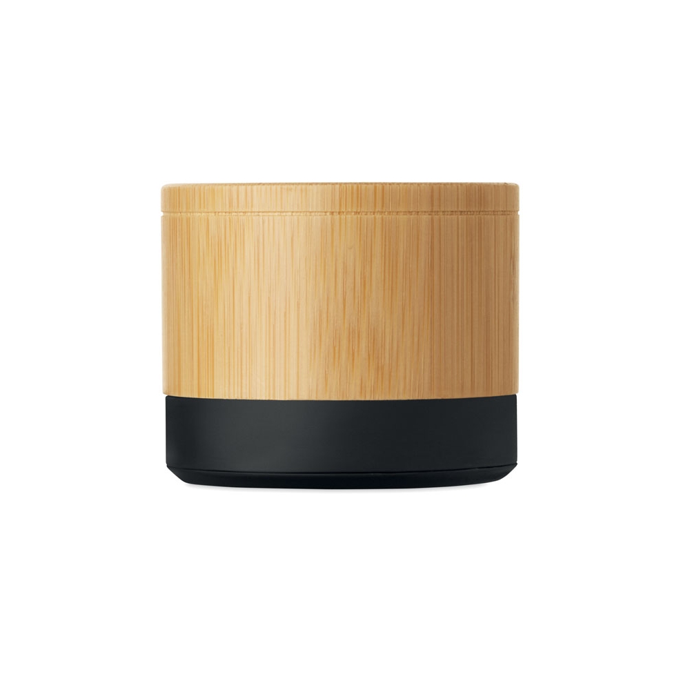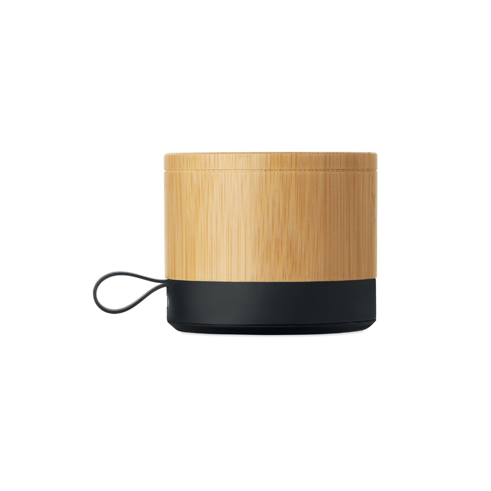 Artikel-Nr: OCBMO2801-405.1 wireless Lautsprecher. ABS Sockel und Bambusgehäuse. Kompaktes, modernes Design. 3W Mono-Sound. Inkl. wiederaufladbarem und austauschbarem 500mAh-Akku.