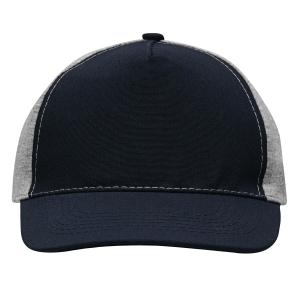 Artikel-Nr: INP56-07016025-Panel-Baseball-Cap UP TO DATE, 2-farbig: verstärktes Frontsegment in Canvas-Optik, übrige Segmente aus Jersey, 4 gestickte Luftlöcher, Knopf, farbig abgesetzter und größenverstellbarer Klettverschluss am Hinterkopf