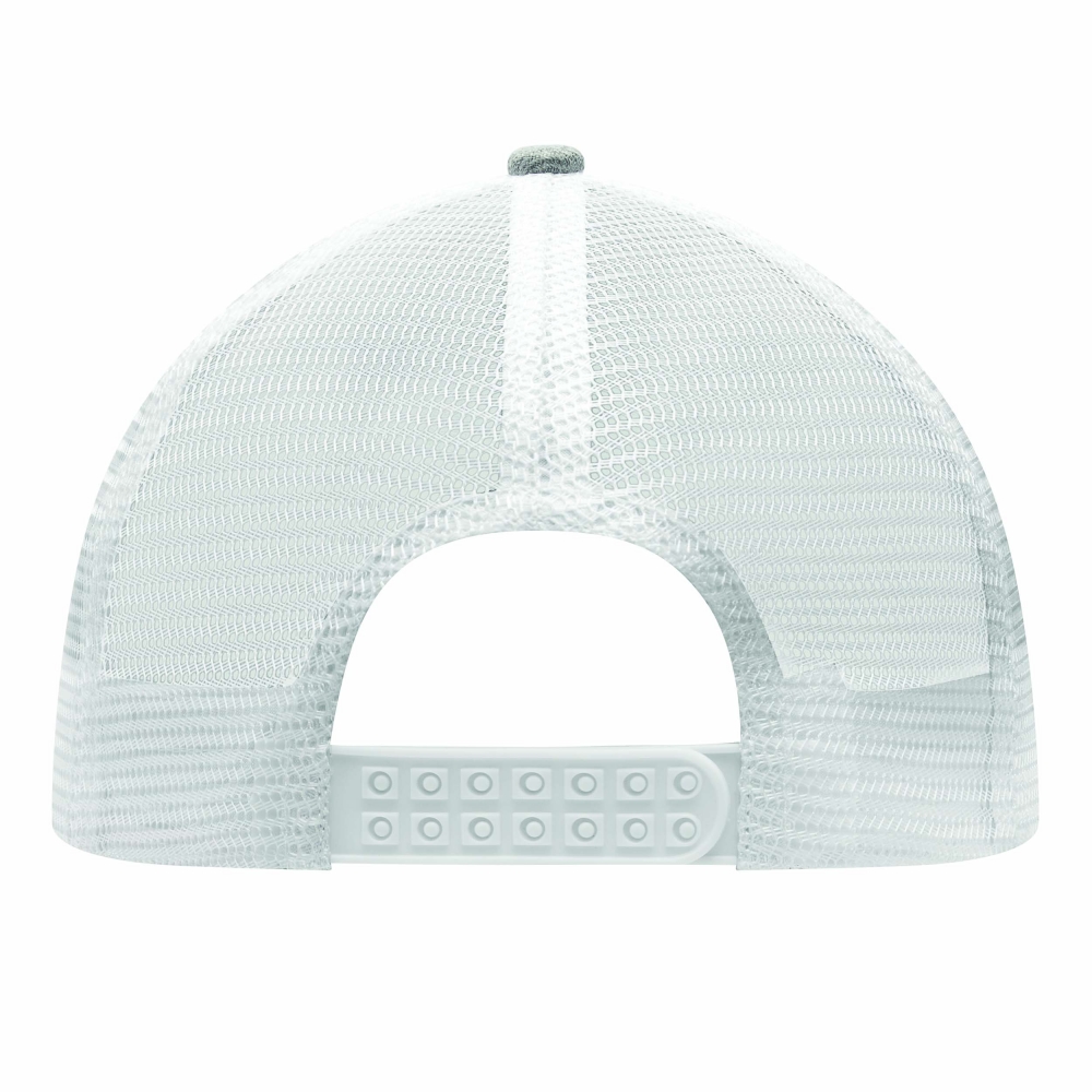 Artikel-Nr: INP56-07018125-Panel-Baseball-Cap CASUAL FIT, 2-farbig: verstärktes, meliertes Frontsegment, übrige Segmente aus Netzstoff, Knopf, größenverstellbarer, doppelreihiger Kunststoffverschluss am Hinterkopf