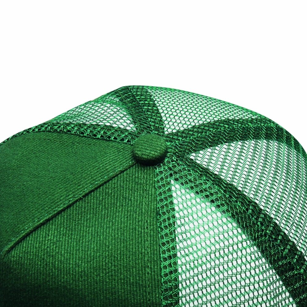 Artikel-Nr: INP56-07016255-Panel-Cap FASTBALL: verstärktes Frontsegment aus gebürsteter Baumwolle, übrige Segmente aus Netzstoff, Knopf, größenverstellbarer, doppelreihiger Kunststoffverschluss am Hinterkopf