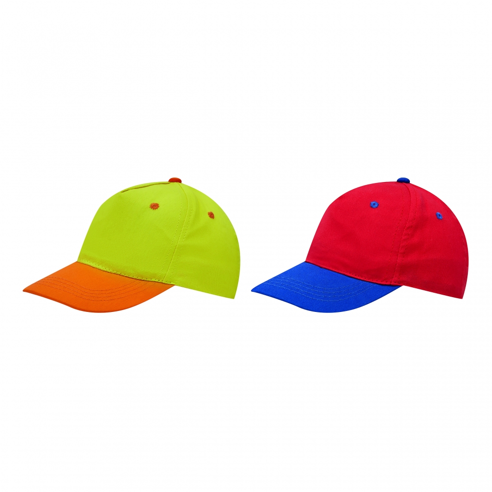 Artikel-Nr: INP56-07021265-Panel-Baseball-Cap für Kinder CALIMERO: mit farblich abgesetztem Schirm, verstärktes Frontsegment, 6 gestickte Luftlöcher, Knopf, größenverstellbarer Klettverschluss am Hinterkopf