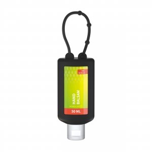 Artikel-Nr: SAN20-314-199-100Praktische Kosmetikflasche zum Anhängen! Das Fläschchen mit Silikonhülle ist nicht nur optisch ein echter Hingucker! Raffiniert mit Schlaufe zum an die Handtasche, an den Rucksack oder an den Trolli. 50 ml Flasche und Klappdeckel (zufällig ausgerichtet) weiß; Silikonhülle und Schlaufe in Nachfüllbar. Flasche hergestellt aus 100% recyceltem PET, weiß mit leichter R-PET-Färbung. Handbalsam Ingwer-Limette: Ingwer wird in der traditionellen chinesischen Medizin häufig aufgrund seiner reizlindernden Wirkung eingesetzt. Er enthält Inhaltsstoffe, die freie Radikale abfangen, regt die Mikrozirkulation der Haut an, wirkt anregend und wärmend. In diesem schnell einziehenden Feuchtigkeitsbalsam rundet die Frische von Limetten das natürliche Aroma des Ingwers zu einer stimmigen Duftkomposition ab. Eine frische Handcreme für Sie und Ihn! • Vegan • pH-hautneutral • Ohne Parabene • Dermatologisch getestet "Sehr gut hautverträglich" • Hergestellt in Deutschland Dekoration: Body Label: Etikett PE (weiß) auf Vorder- und Rückseite, Druck 4c CMYK. Wahlweise glänzend oder matt. Füllung: 50ml