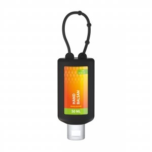 Artikel-Nr: SAN20-314-200-100Praktische Kosmetikflasche zum Anhängen! Das Fläschchen mit Silikonhülle ist nicht nur optisch ein echter Hingucker! Raffiniert mit Schlaufe zum Anhängenan die Handtasche, an den Rucksack oder an den Trolli. 50 ml Flasche und Klappdeckel (zufällig ausgerichtet) weiß; Silikonhülle und Schlaufe in Nachfüllbar. Flasche hergestellt aus 100% recyceltem PET, weiß mit leichter R-PET-Färbung. Handbalsam Ringelblume-Aloe Vera: Die Extrakte der Ringelblume enthalten eine Vielzahl natürlicher, entzündungshemmender Substanzen und ätherischer Öle. Aloe Vera wirkt wohltuend kühlend und beruhigend. In dieser hochwertigen Handcreme sind die Vorzüge beider Heilpflanzen stimmig zu einem schnell einziehenden Feuchtigkeitsbalsam vereint. Ideal zur Pflege von trockenen, rauen und strapazierten Händen. • Vegan • pH-hautneutral • Ohne Parabene • Dermatologisch getestet "Sehr gut hautverträglich" • Hergestellt in Deutschland Dekoration: Body Label: Etikett PE (weiß) auf Vorder- und Rückseite, Druck 4c CMYK. Wahlweise glänzend oder matt. Füllung: 50ml