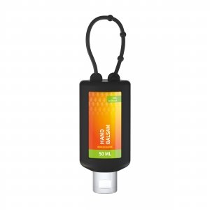 Artikel-Nr: SAN20-314-200-100Praktische Kosmetikflasche zum Anhängen! Das Fläschchen mit Silikonhülle ist nicht nur optisch ein echter Hingucker! Raffiniert mit Schlaufe zum Anhängenan die Handtasche, an den Rucksack oder an den Trolli. 50 ml Flasche und Klappdeckel (zufällig ausgerichtet) weiß; Silikonhülle und Schlaufe in Nachfüllbar. Flasche hergestellt aus 100% recyceltem PET, weiß mit leichter R-PET-Färbung. Handbalsam Ringelblume-Aloe Vera: Die Extrakte der Ringelblume enthalten eine Vielzahl natürlicher, entzündungshemmender Substanzen und ätherischer Öle. Aloe Vera wirkt wohltuend kühlend und beruhigend. In dieser hochwertigen Handcreme sind die Vorzüge beider Heilpflanzen stimmig zu einem schnell einziehenden Feuchtigkeitsbalsam vereint. Ideal zur Pflege von trockenen, rauen und strapazierten Händen. • Vegan • pH-hautneutral • Ohne Parabene • Dermatologisch getestet "Sehr gut hautverträglich" • Hergestellt in Deutschland Dekoration: Body Label: Etikett PE (weiß) auf Vorder- und Rückseite, Druck 4c CMYK. Wahlweise glänzend oder matt. Füllung: 50ml