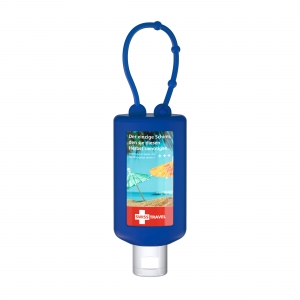 Artikel-Nr: SAN20-311-226-100Praktische Kosmetikflasche zum Anhängen! Das Fläschchen mit Silikonhülle ist nicht nur optisch ein echter Hingucker! Raffiniert mit Schlaufe zum die Badetasche, den Rucksack oder den Kinderwagen. 50 ml Flasche und Klappdeckel (zufällig ausgerichtet) weiß; Silikonhülle und Schlaufe in Nachfüllbar. Flasche hergestellt aus 100% recyceltem PET, weiß mit leichter R-PET-Färbung. Sensitive Sonnenmilch - LSF 30, parfümfrei ohne Duftstoffe (Hohes Schutzniveau). Wasserfeste und schnell einziehende Sonnencreme mit Vitamin E und Glycerin für 24-Stunden-Langzeitfeuchtigkeit. Sofortschutz mit ausgewogenem UVA- / UVB-Breitbandfilter. • Ohne Octocrylene • Nanofrei, vegan • Kein Mikroplastik • Keine Parabene, Mineralöle, Silikone • Korallenfreundlich gemäß Hawaii-Riffgesetz • Klinisch und dermatologisch getestet "Sehr gut hautverträglich" • Hergestellt in Deutschland Dekoration: Body Label: Etikett PE (weiß) auf Vorder- und Rückseite, Druck 4c CMYK. Wahlweise glänzend oder matt.