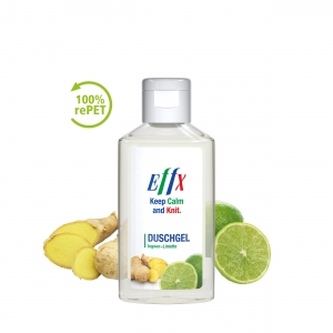 Artikel-Nr: SAN20-300-240-10050 ml Flasche mit Klappdeckel. Flasche hergestellt aus 100% recyceltem PET, transparent mit leichter R-PET-Färbung. Klappdeckel "weiß" aus recyceltem PP, zufällig ausgerichtet. Nachfüllbar. Das Body & Hair Duschgel mit dem Mix aus Ingwer und Limette sorgt mit seinem spritzigen Duft für Frische über den ganzen Tag und macht das Duschen zum Erlebnis! Es entsteht ein angenehmer Schaum, der Haut und Haare reinigt und zugleich pflegt. • Vegan • pH-hautneutral • Ohne Parabene • Ohne Konservierungsstoffe • Dermatologisch getestet "Sehr gut hautverträglich" • Hergestellt in Deutschland Dekoration: Body Label: Etikett PE (weiß) auf Vorder- und Rückseite, Druck 4c CMYK. Füllung: 50ml