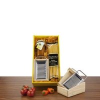250 g Sugo und eine Parmesanreibe mit Schubfach, in gelber Holzkiste