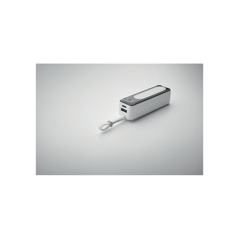 Artikel-Nr: OCBMO2178-065000 mAh Powerbank. ABS-Gehäuse. Mit COB Leuchte (6 LEDs) mit 4 Lichteinstellungen. Ausgangsstrom DC5V/2A 1x Typ A und 1x Typ C in / out. Inkl. integriertes USB-Kabel mit Typ-C-Stecker.