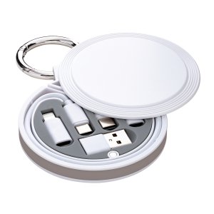Artikel-Nr: RFS_S_52575-WE-RBNUnterschiedliche Anschlüsse und verschiedene Kabel machen Ihnen mit REEVES-myConvertics keine Sorgen mehr. REEVES-myConvertics enthält ein USB-C auf USB-C-Ladekabel von 48 cm Länge, dazu Adapter für Micro-USB, Apple® 8 Pin und USB-A. Das USB-C-Kabel ist in Abhängigkeit von Endgerät und Adapter bis zu 60 Watt Fast Charge geeignet. Darüber hinaus versorgt das Kabel das zu ladende Gerät nicht nur mit Strom, sondern ist auch für die Übertragung von Daten einsetzbar. Das Kabel und alle Stecker sind aus recyceltem TPE-Kunststoff hergestellt. 6-in-1 Funktion:- USB-C zu USB-C- Mirco-USB zu USB-C- 8 Pin for Apple® zu USB-C- USB-C zu USB-A- Mirco-USB zu USB-A- Pin for Apple® zu USB-AAlle Bestandteile sind in einem handlichen Gehäuse aus recyceltem ABS Kunststoff verstaut, das durch einen Verschluss zum Schieben und Drehen geöffnet wird und durch einen Magnet-Verschluss auch bei Erschütterungen fest verschlossen bleibt. Ein stabiler Karabiner macht die Befestigung am Rucksack oder ähnlichem leicht. myConvertics ist handlich flach und bietet eine besonders große und präsente Druckfläche. Die Werbeanbringung kann mit einem großflächigem UV-Druck oder einem Tampondruck erfolgen. Tipp: Das Logo bleibt auch bei Öffnen des Gehäuses sichtbar. Konfigurieren Sie Ihre Wunschfarben: Das Gehäuse kann in Schwarz oder Weiß gewählt und ein Silikonring aus 17 verschiedenen Farben ergänzt werden. So können Sie spielendleicht den Look des Cases an Ihr Design anpassen. Alle Komponenten sind ab Lager Köln verfügbar. Apple® is a registered trademark of Apple Inc., registered in the US and other countries.