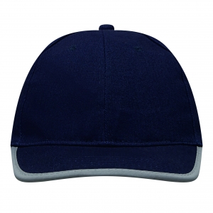 Artikel-Nr: INP56-07021646-Panel-Baseball-Cap DETECTION: mit reflektierendem Band an Schirm und hinten auf dem Klettverschluss, 6 gestickte Luftlöcher, Knopf, verstärkte Frontsegmente, 100 % Baumwolle (heavy-brushed)