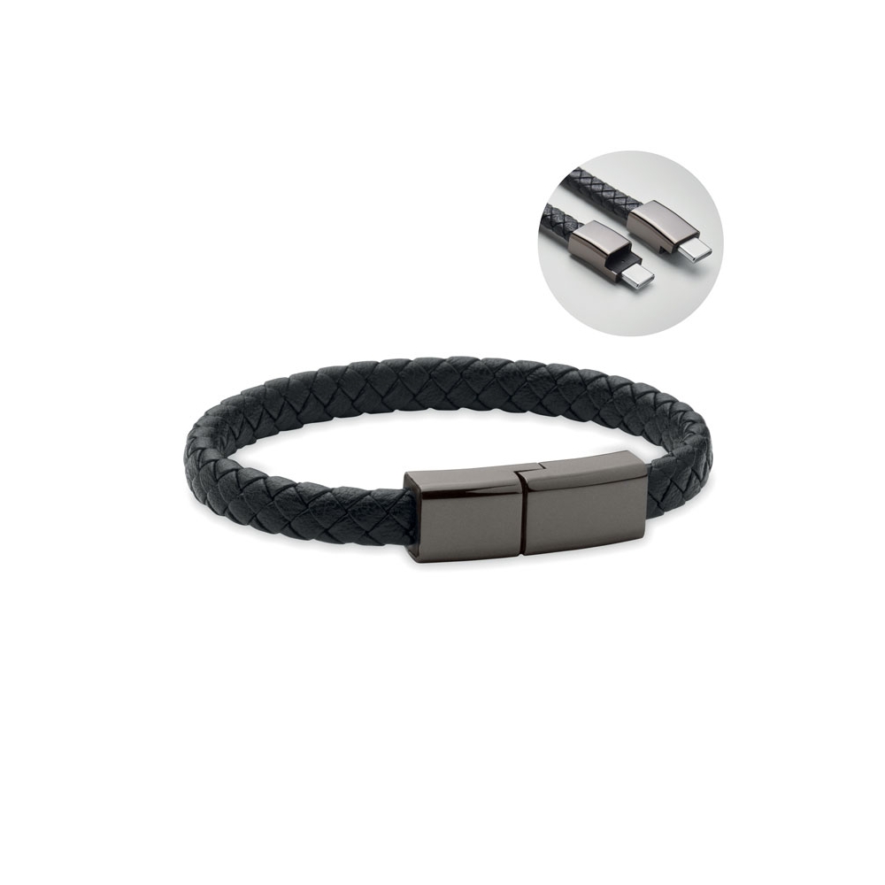 Artikel-Nr: OCBMO2646-03Armband mit Ladekabel 60W. Typ-C auf Typ-C. PU in flechtoptik und zinklegierung. Umfang handgelenk: ca. 21 cm.