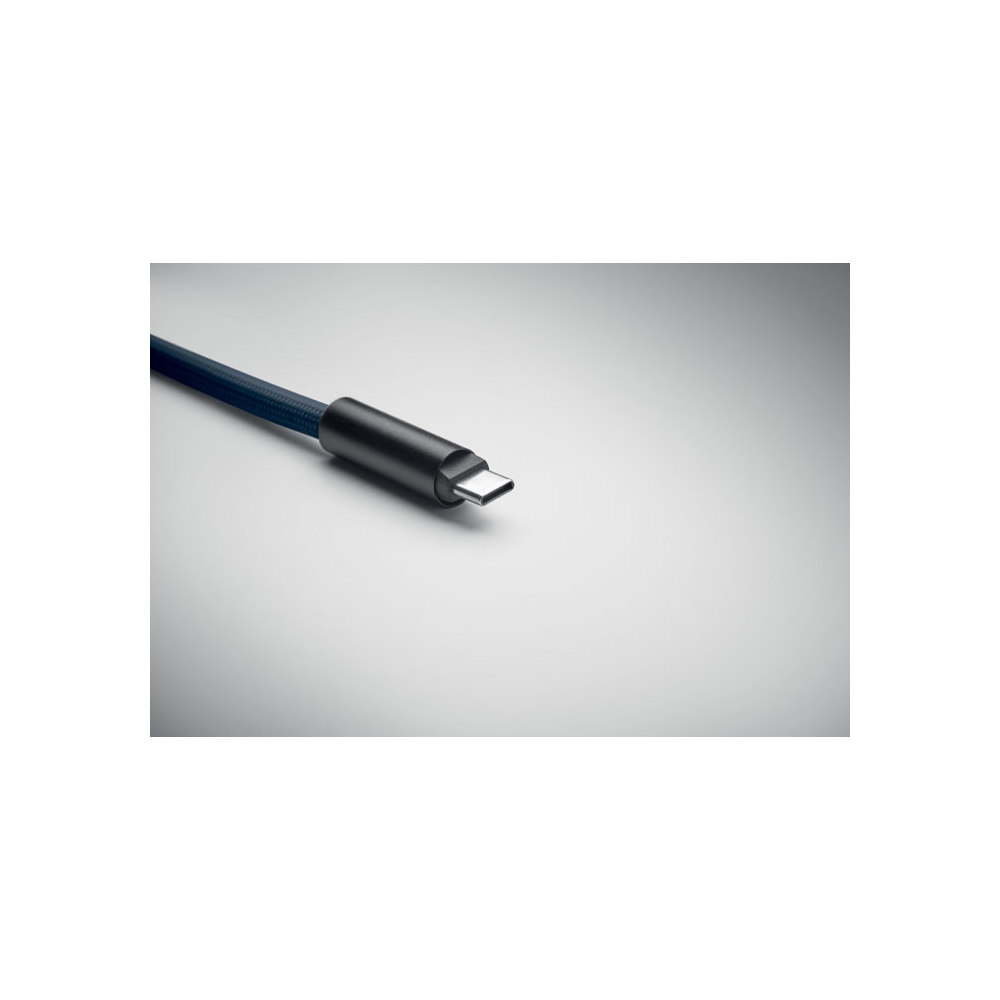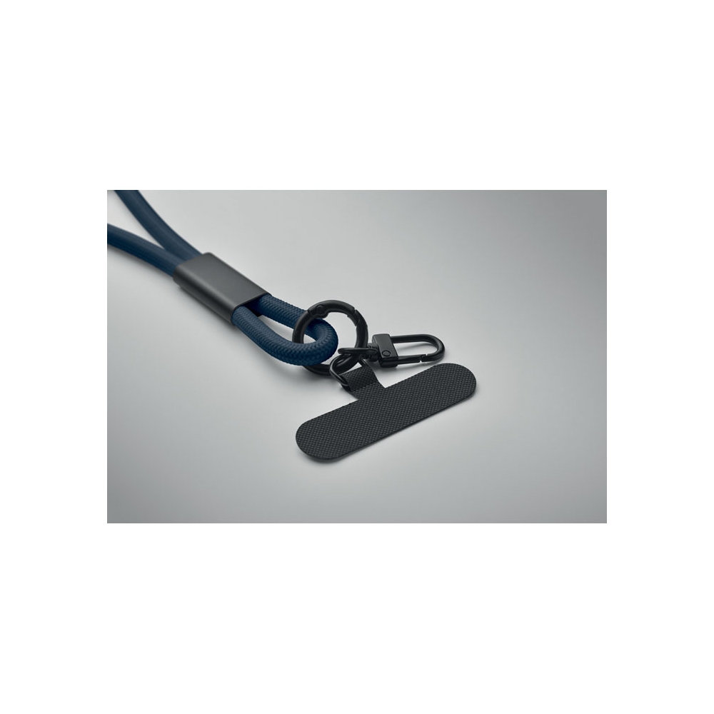 Artikel-Nr: OCBMO2618-8560W Lanyard-Datenübertragungs- und Ladekabel. Typ-C auf Typ-C in RPET mit Universal-Halter und Clip für Schlüssel.