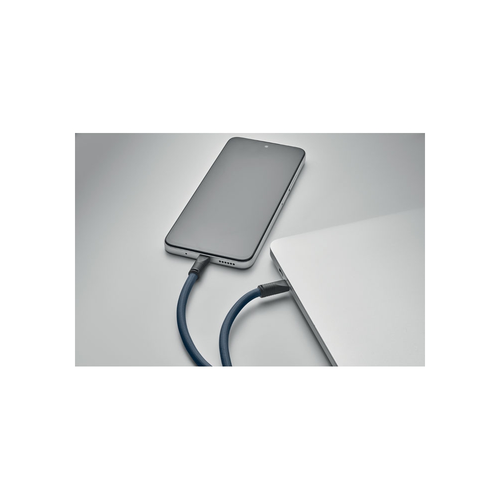 Artikel-Nr: OCBMO2618-8560W Lanyard-Datenübertragungs- und Ladekabel. Typ-C auf Typ-C in RPET mit Universal-Halter und Clip für Schlüssel.