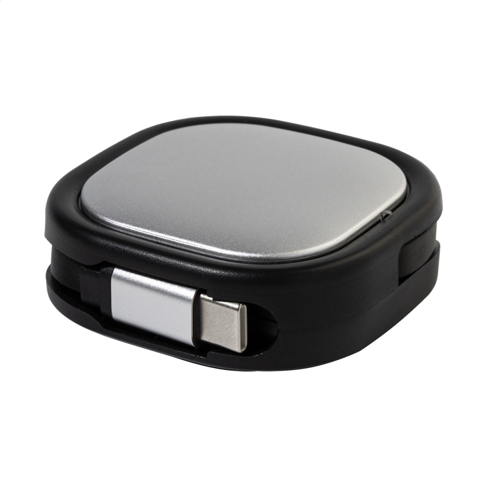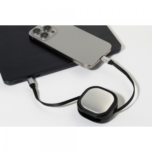 Artikel-Nr: AND864128-10Ausziehbares USB-C zu USB-C Ladekabel aus recyceltem ABS und recyceltem Aluminium. Unterstützt 60W PD Fast-Charging.