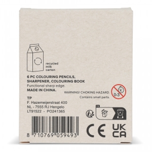Artikel-Nr: ART91522N0054Ein komplettes Kreativitätsset für unterwegs, bestehend aus 6 Malstiften, einem Anspitzer und einem Malbuch, alles ordentlich verpackt in einem Karton aus recyceltem Milchkarton. Perfekt für unterwegs, bietet es stundenlange Unterhaltung in einem kompakten Paket. Zusammen mit dem umweltfreundlichen Digitaldruck ist es ein ideales Geschenk für angehende Künstler.