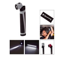 Artikel-Nr: 57372035GR-SWDiese vielseitige Arbeitsleuchte ist gepaart mit einer integrierten 1 LED (12 Lumen) Taschenleuchte, deren Leuchtenkopf bis zu 90° stufenlos neigbar ist. So können Sie auch schwierig zu erreichende Stellen optimal ausleuchten. Außerdem lässt sich die Leuchte schnell zu einer hellen Arbeitsleuchte umfunktionieren, indem das Kopfteil herausgezogen wird. Dadurch werden die 8 sehr hellen LED (120 Lumen) aktiviert. Im Fußteil der Leuchte befindet sich ein starker Magnet, der für sicheren Halt an allen metallischen Gegenständen, wie z.B. Motorhaube oder Eisenträger sorgt. Aber auch auf Reisen, beim Camping und anderen Outdoor-Aktivitäten erweist die kompakte Leuchte nützliche Dienste. 3 AAA Batterien und hochwertige Karton-Geschenkverpackung inkl.