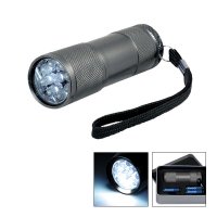 Artikel-Nr: 57375730GU-00Mit dieser Taschenleuchte mit 9 ultrahellen LED (20 Lumen) und führender LED Technik haben Sie in allen Situationen die optimale Lichtquelle zur Hand: Für handwerkliche Arbeiten, auf Reisen, in der Freizeit oder bei Autopannen. Die Leuchte ist sehr energiesparend. Das griffige Gehäuse ist aus hochwertigem Aluminium. Durch die praktische Trageschlaufe haben Sie die Leuchte immer fest im Griff. 3 AAA Batterien und attraktive Metalldose inkl.