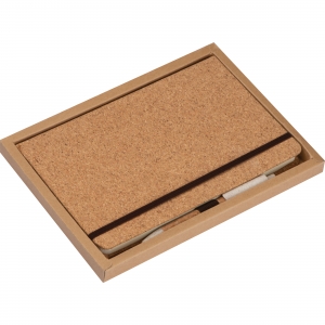 Artikel-Nr: EAG218813A5 Notizbuch mit Korkeinband, 160 gepunkteten Seiten, Gummiband zum Verschließen, Kugelschreiberschlaufe sowie einem Kugelschreiber aus Weizenstroh mit Korkummantelung. Ihr Logo wird auf das Notizbuch gedruckt.