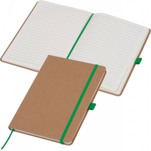 Artikel-Nr: EAG528309A5 Notizbuch aus recyceltem Papier mit 160 linierten Seiten, einem Lesezeichen sowie einer Kugelschreiberschlaufe die farblich auf das Verschlussband abgestimmt ist. Ihre Werbung drucken wir außen auf das Cover.