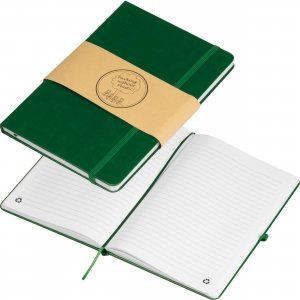 Artikel-Nr: MCM2374899Notizbuch mit Cover aus recyceltem PU mit 192 linierten Seiten aus Recyclingpapier, Gummiband zum Verschließen und Kugelschreiberschlaufe. Ihre Werbung wird auf das Cover gedruckt.