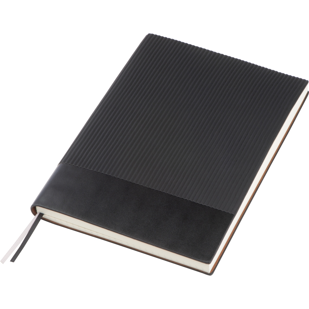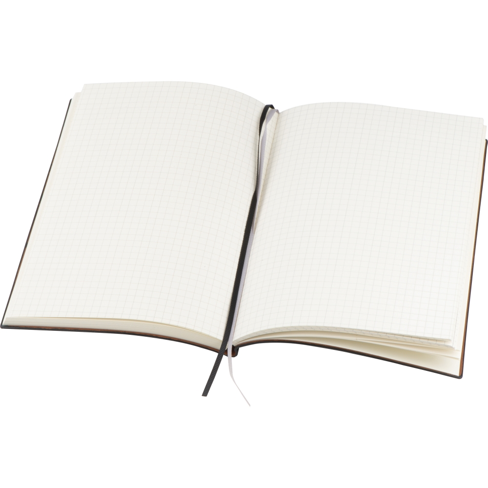 Artikel-Nr: EAG143903A5 Notizbuch mit 200 karierten Seiten, flexiblem Soft-PU-Cover und Lesezeichen. Ihre Werbung drucken wir auf die glatte Fläche der Vorderseite.
