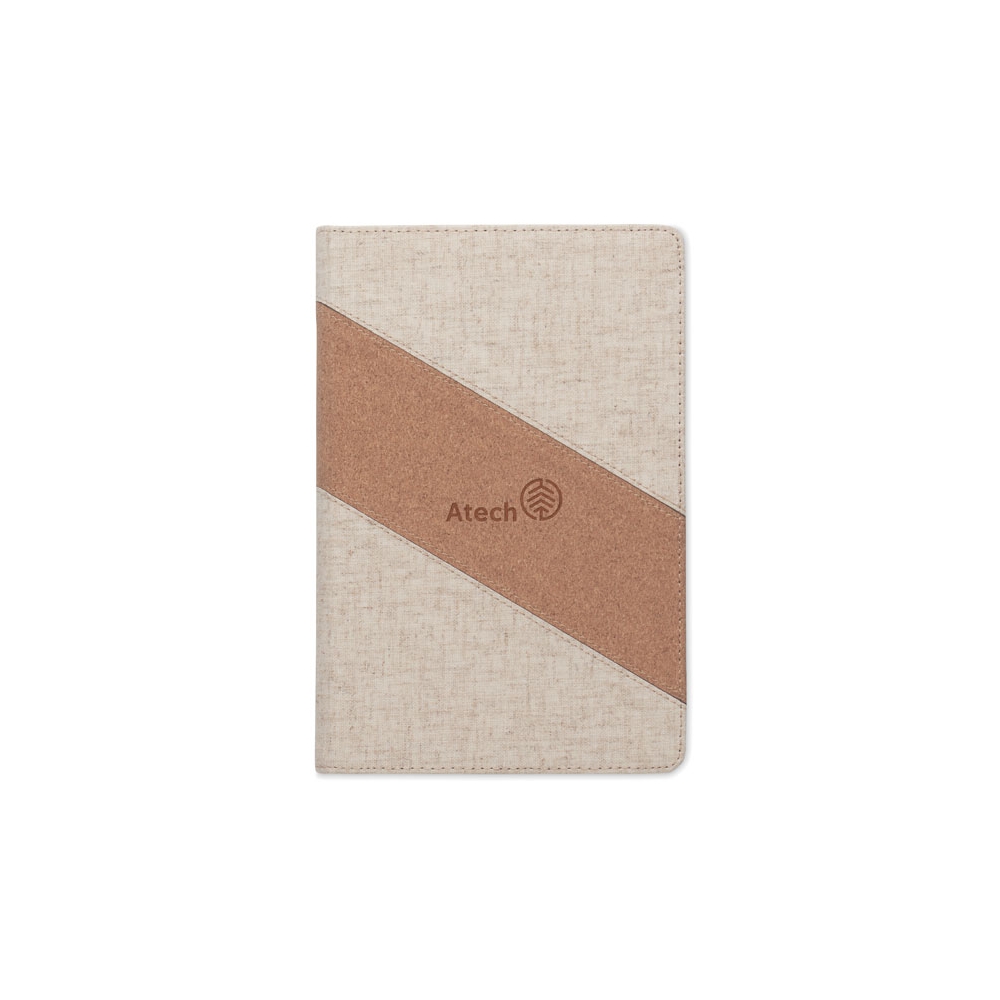 Artikel-Nr: OCBMO2734-13DIN A5 Notizbuch mit integriertem kabellosen 15W Ladegerät. Cover mit Details aus Baumwolle und Kork. 64 Blatt (128 Seiten) liniertes Papier. Lesebändchen.