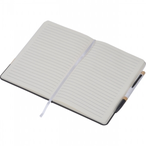 Artikel-Nr: MCM2529006A5 Notizbuch mit Kugelschreiber. Das Notizbuch besteht aus recyceltem Papier (160 linierte Seiten), Bambus und PU. Der Kugelschreiber im passenden Design, aus Aluminium und Bambus. Perfekt für Notizen, Ideen, Skizzen und vieles mehr. Ihre Werbung drucken wir auf das Notizbuch.