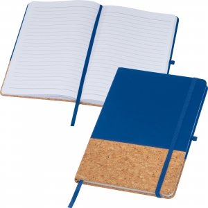 Artikel-Nr: EAG139504A5 Notizbuch mit 160 linierten Seiten und PU-Kork Cover, Lesezeichen, Kugelschreiberschlaufe und elastischem Verschlußband. Ihre Werbung drucken wir auf die Vorderseite.