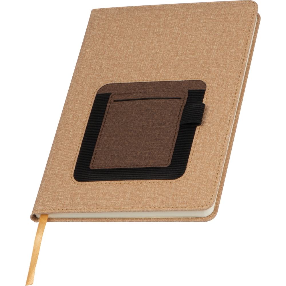 Artikel-Nr: EAG268113DIN A5 Notizbuch mit PU Einband, 160 gepunkteten Seiten, Lesezeichen, Kugelschreiberschlaufe sowie einem Einsteck- und einem Smartphonefach (Breite ca. 9 cm) außen am Cover. So ist alles dabei und immer griffbereit. Ihre Werbung drucken wir außen auf das Cover.