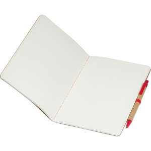 Artikel-Nr: MCM2377605A5 Notizbuch aus recyceltem Papier mit 120 Seiten, Gummiband zum Verschließen und Kugelschreiberschlaufe inkl. Kugelschreiber mit blau schreibender Mine. Ihre Werbung wird auf das Cover gedruckt.