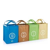 Artikel-Nr: W460P795029Set bestehend aus 4 PP-Taschen zum Trennen von Recyclingabfall, PVC frei, Taschen in blau, grün, hell- und dunkelbraun im Set, wiederverwendbar, konfektioniert im bedruckten Umschlag. Maße: 30 x 30 x 39 mm.