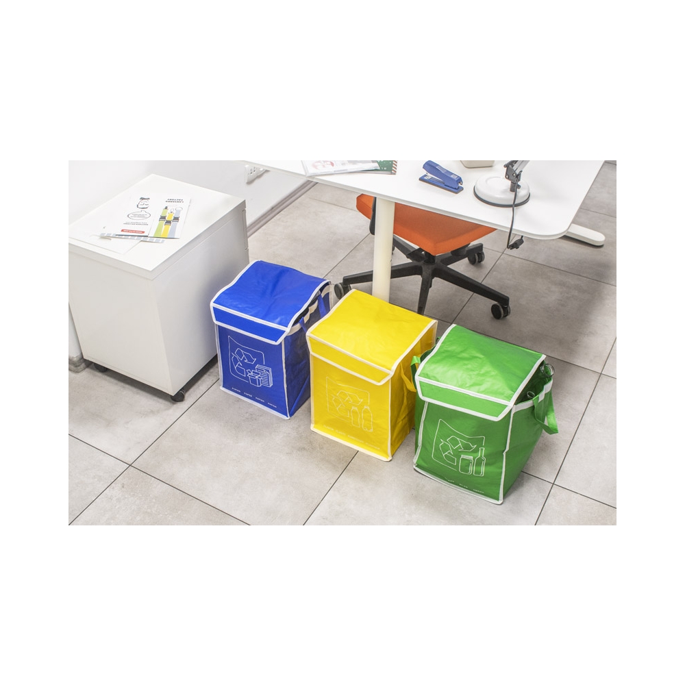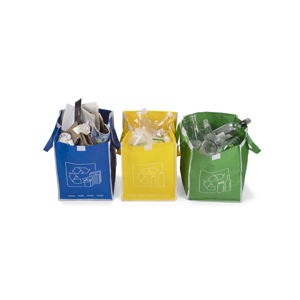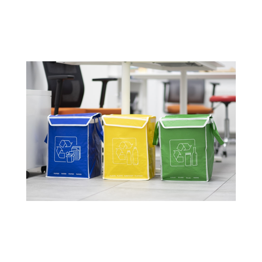 Artikel-Nr: ARD20340RESPECT-Abfalltrennungsbeutel werden aus haltbarem Polypropylen hergestellt. Sie sind die perfekte Wahl für umweltbewusste Menschen. Die Taschen haben Klettverschlüsse an den Klappen und zusätzliche Klettverschlüsse an den Seiten, um sie miteinander zu verbinden. Eine übersichtliche Grafik zeigt die Abfallarten.