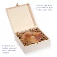 Artikel-Nr: 4943090In Schoko- und Mandelmarzipan eingeschlagene Schokotorte, unter offenem Feuer abgeflämmt und in einer edlen Holzbox verpackt. Die Einsatzmöglichkeiten dieses Meisterstücks sind nahezu unbegrenzt. Egal, ob als edles Kundenpräsent beim Außendienstbesuch, als leckeres Dankeschön oder als ideales Geschenk für kleinere Teams. Der Deckel der Holzbox kann optional mit einem 4-farbigen Digitaldruck veredelt werden.
