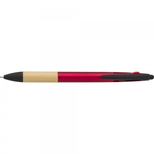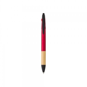 Artikel-Nr: GIV966208008ABS-Kugelschreiber mit 3-Farben-Tinte, Bambusgriff und Stylus-Spitze. Tintenfarben: rot, blau, schwarz.