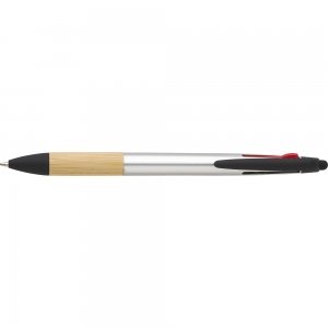 Artikel-Nr: GIV966208032ABS-Kugelschreiber mit 3-Farben-Tinte, Bambusgriff und Stylus-Spitze. Tintenfarben: rot, blau, schwarz.
