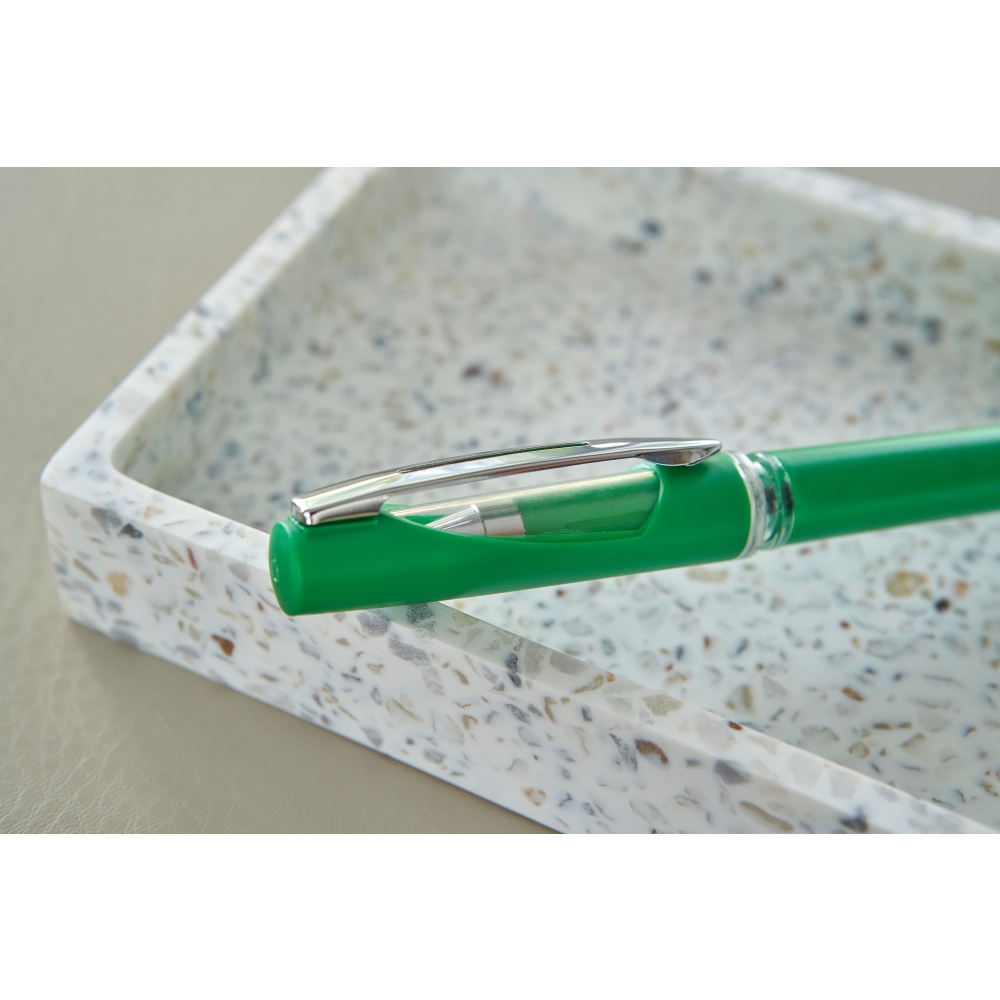 Artikel-Nr: GIV1097471023127Gel-Tintenschreiber aus ABS mit Metallclip und ABS-Kappe. Die Kappe hat ein transparentes Fenster. Schwarze Tinte mit einer Schreiblänge von 400 m.