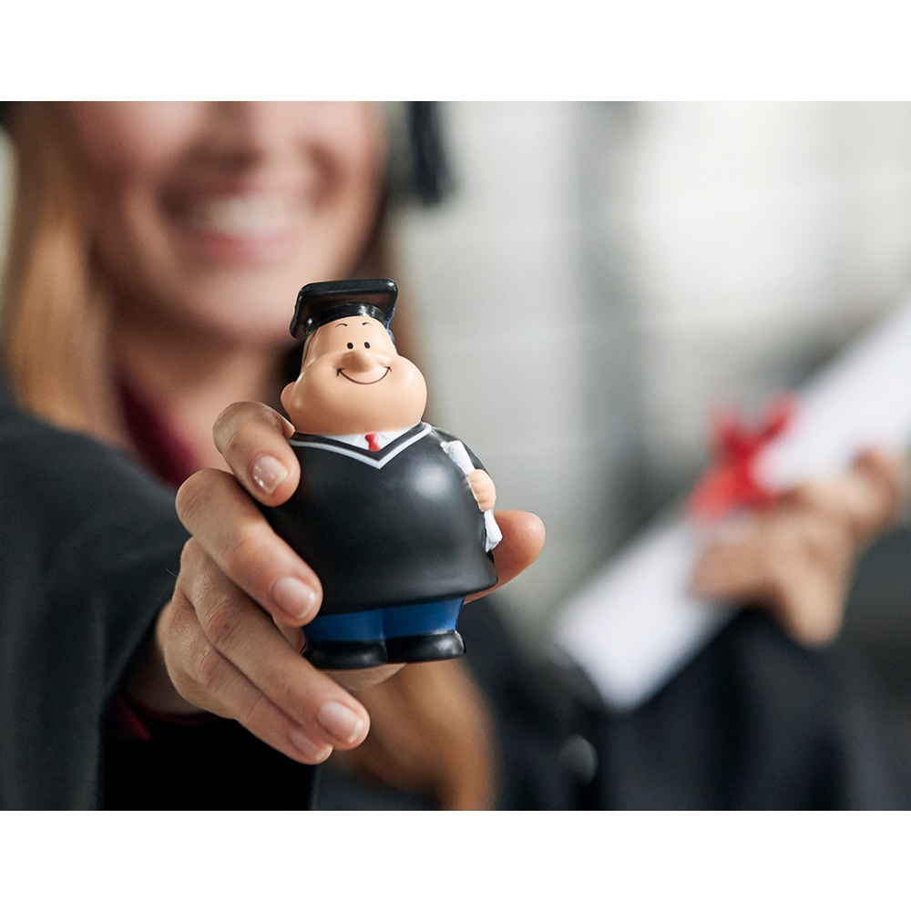 Artikel-Nr: GUT24299Jubelschreie, fliegende Hüte und unser Bert® mittendrin. Mit dem Diplom in der Tasche macht er sich auf in die Welt, um seine hervorragenden Kentnisse in Entspanungstechniken in der Praxis anzuwenden. SQUEEZIES® Absolventen Bert® zum Abbau von Stress einfach "zusammenknautschen". Durch die Materialbeschaffenheit nimmt das Produkt die Ursprungsform wieder ein.