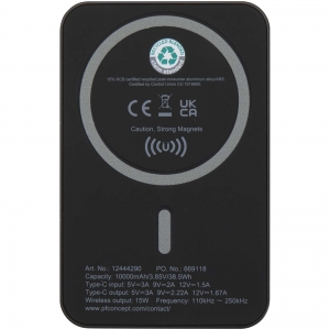 Acrab 15 W 10.000 mAh magnetische kabellose Powerbank mit 20 W PD aus recyceltem Kunststoff