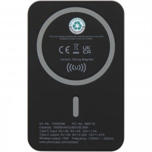 Artikel-Nr: CPO12444290Laden Sie Ihre Geräte smarte und schneller mit der kompakten Acrab 10.000 mAh Powerbank aus recyceltem Kunststoff. Genießen Sie bis zu 15W magnetisches, kabelloses Laden für kompatible Smartphones, einschließlich iPhone 12 und neuerer Modelle. Für andere Geräte mit kabelloser Ladefunktion, jedoch ohne Magnetfunktion, liegt ein Metallringaufkleber für die sichere Ausrichtung bei. Die Powerbank unterstützt außerdem das 20W Schnellladen über Kabel (Typ C) sowie das gleichzeitige Laden von zwei Geräten (kabellos und über Kabel). So sind Sie auch unterwegs immer ausreichend mit Strom versorgt. Eine LED-Anzeige informiert über den Lade- und Batteriestatus.
