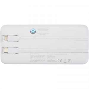 Adhil 10 W 10.000 mAh Powerbank aus recyceltem Kunststoff mit 2 integrierten Kabeln