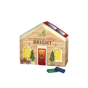 Artikel-Nr: PUC1091.00003Adventskalender Haus in Vollkartonhülle mit kompostierbarem Inlay, rundum individuell bedruckt. Inhalt: 24 Lindt Schokotäfelchen aus feinster Milchschokolade in drei festlichen Farben, bunt gemischt, 124 g. Saisonartikel - solange der Vorrat reicht!